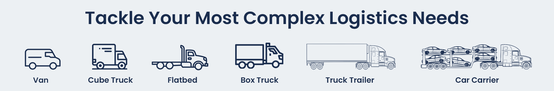 Vans, Pickup Trucks, Box Trucks, Cube Trucks, Refrigerated Trucks, Semi-Trailers, Flatbed Trucks, Car Carrier Trailers